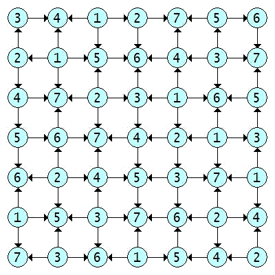 Every Latin square corresponds to a directed acyclic graph with a lattice arrangement, and whose edges indicate order (<). For example: